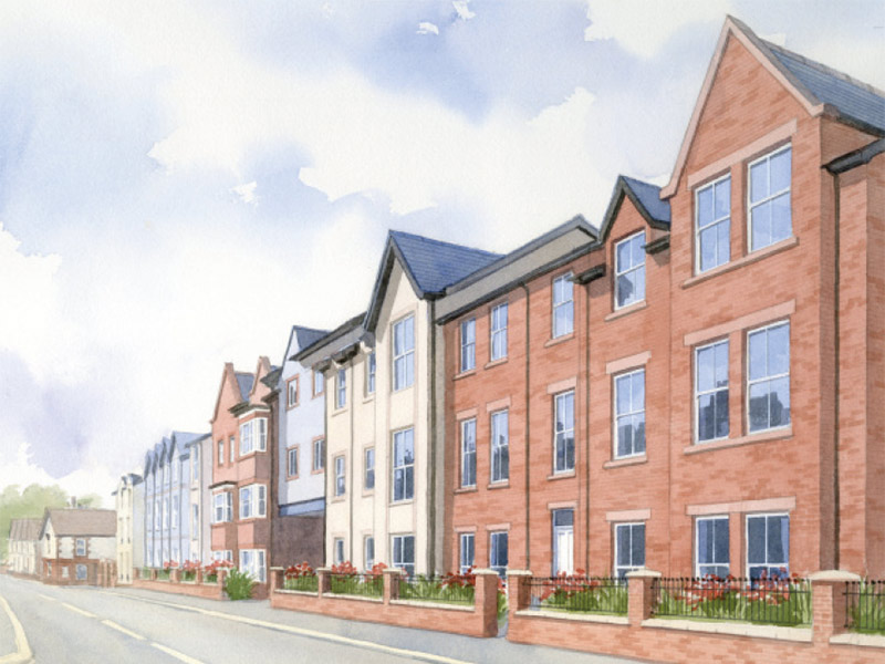 The Carriage Works is a block of 9 new build apartments with lift access on New Street in Mold, completed in 2018 by Croston Homes.